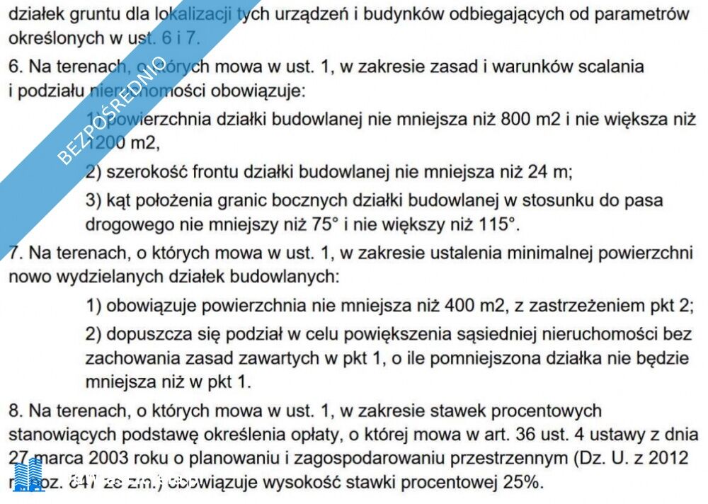 Działka znajduje się przy asfaltowej, oświetlonej drodze, niedaleko przystanku autobusowego, a w najbliższym otoczeniu budowany będzie sklep Dino.