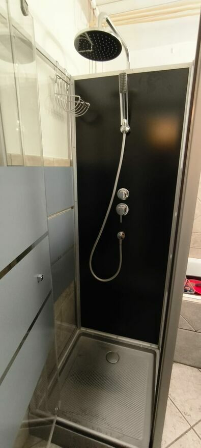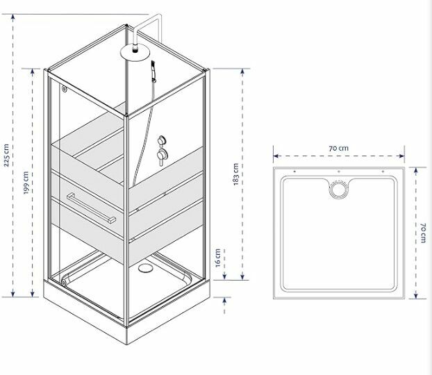 Marwell Kompletny prysznic Dusy 70x70x225 – kompletny zestaw wraz z brodzikiem prysznicowym i armaturą – prysznic narożny z wejściem z przodu . Proste podłączenie z tyłu kabiny . Łatwy montaż - montaż nie wymaga silikonu, jest prosty i nieskomplikowany . Kabina jest aktualnie podłączona od pięciu miesięcy ale nigdy nie używana . Nadaje się do szybkiego podłączenia w małej łazience , garażu . Lub do użytku osoby mającej problem z wejściem do wysokiej wannyRobert
