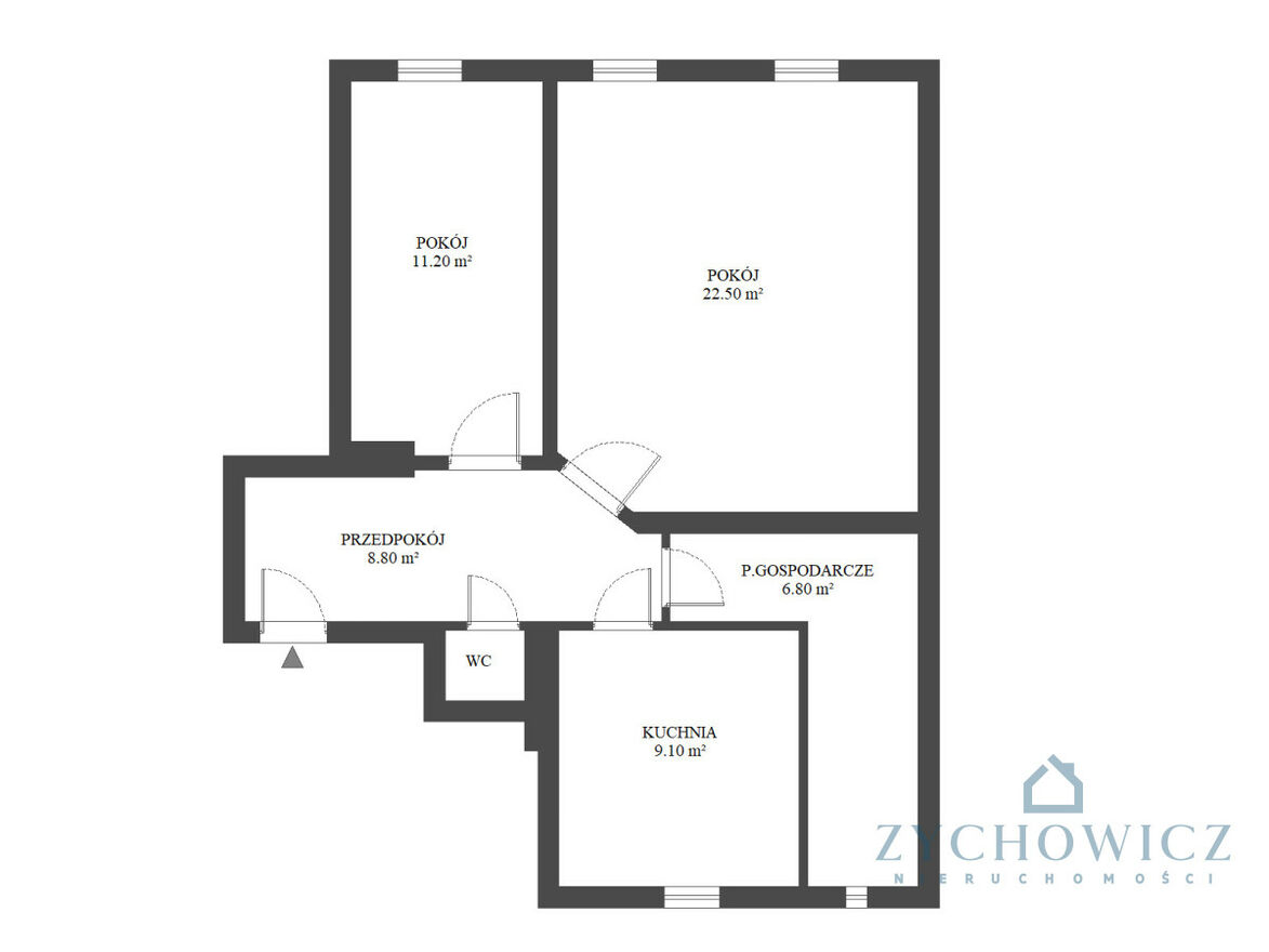 Układ: 2 pokoje, kuchnia, WC, przedpokój, pomieszczenie gospodarcze