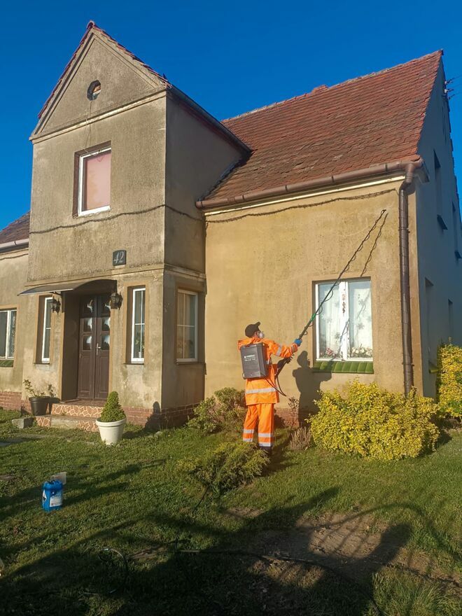 Po umyciu dachu lub elewacji aplikuję środek biobójczy, który zapobiega ponownemu porastaniu przez glony, grzyby i mchy – efekt ochronny nawet do roku!