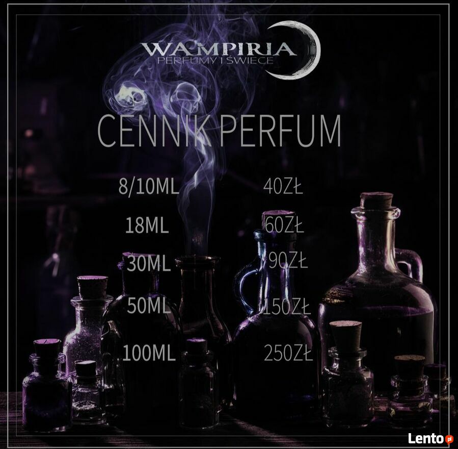 Mam na sprzedaż perfumy w stylu gotyckim. W zdjęciach załączam cennik oraz rodzaje perfum.To ogłoszenie jest archiwalne i może być nieaktualne.